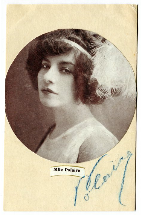 un carton (9 x 14,1 cm). Autographe de Polaire au recto, sous la